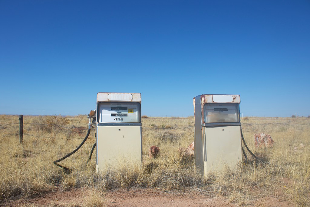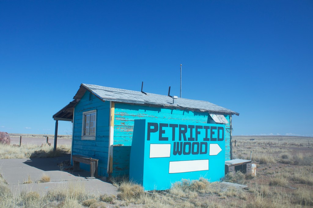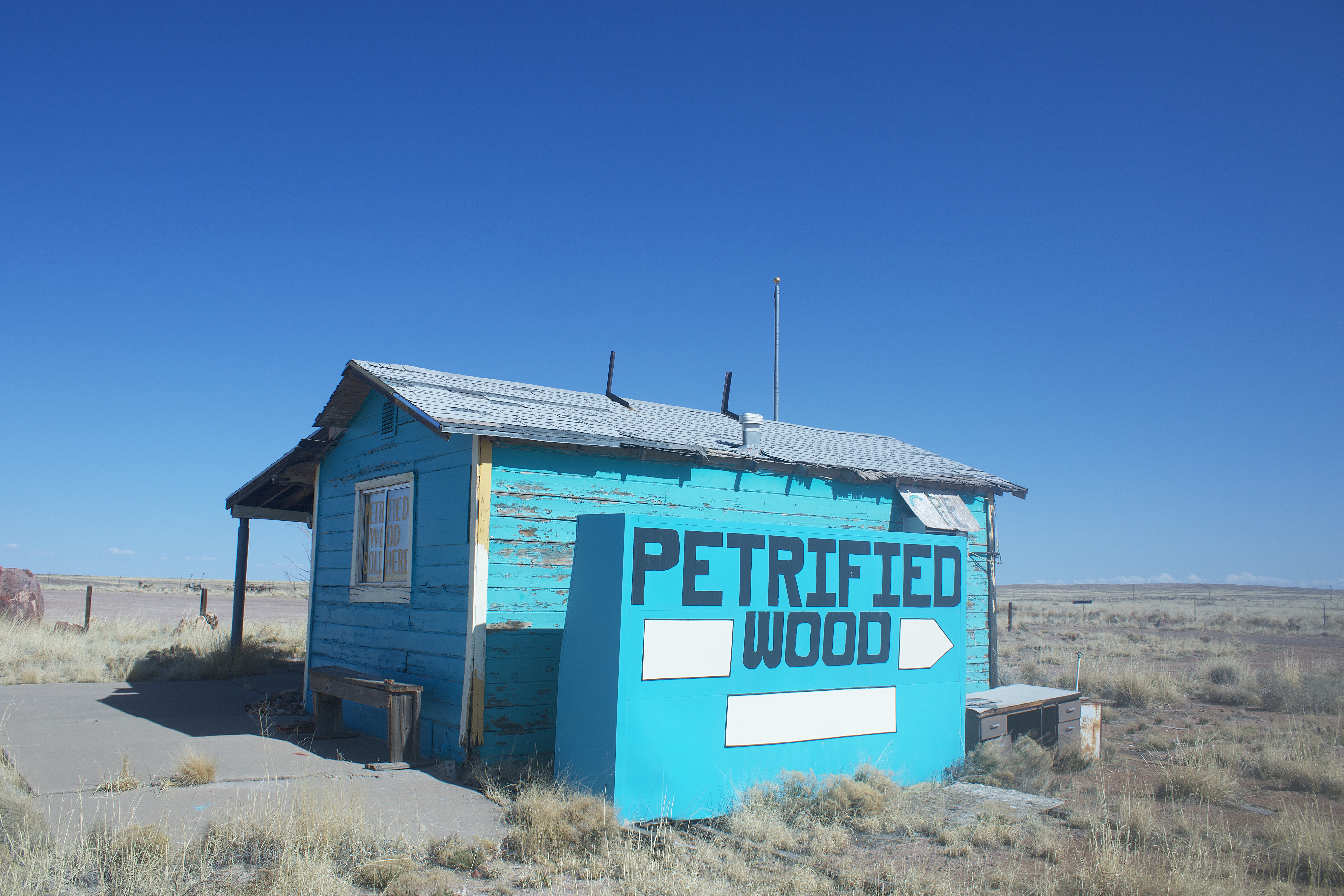 Our first random stop was at a seemingly abandoned spot along AZ-77 N. There were two old-style gasoline pumps beside a petrified wood store. The store doesn’t look abandoned, just unmanned and locked because there were still petrified wood surrounding it, and its paint is still vibrant. True enough, the store owner drove by and asked us if we wanted to buy rocks. We replied, “no, we’re just taking pictures.” He just let us be. This stop set the tone for my photography in this trip; eyeing spots that are either old but preserved, or abandoned and weathered.