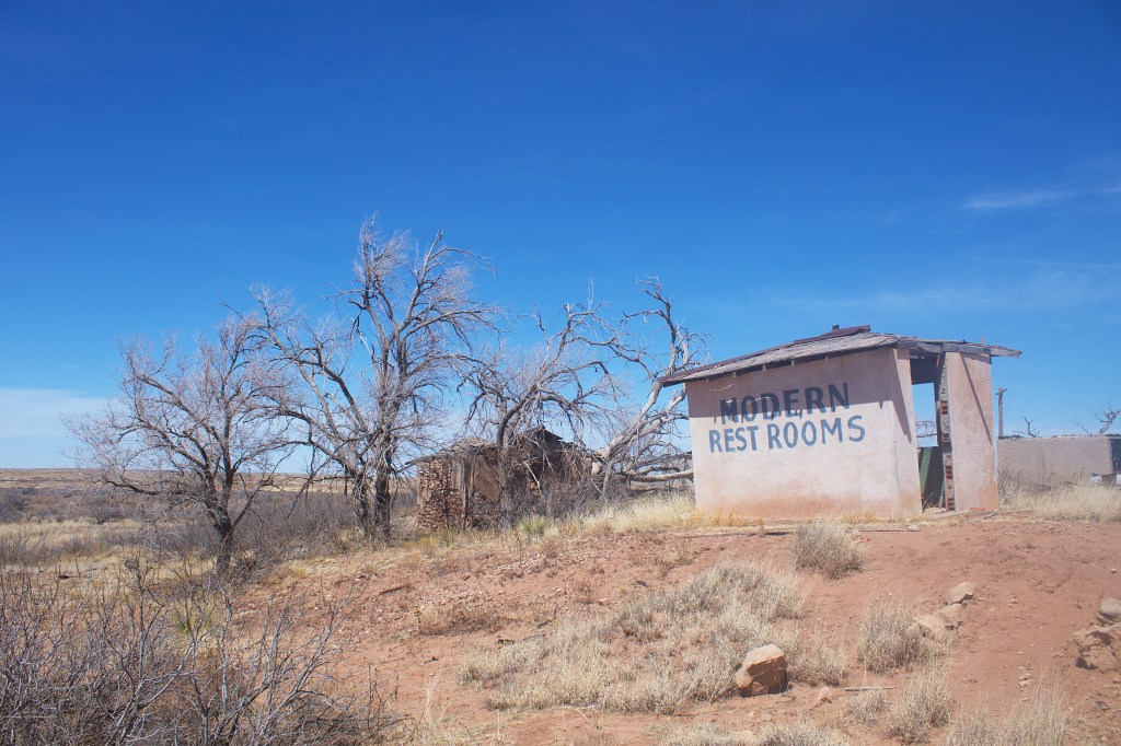 This is one of the most interesting days of the trip. Interstate 40 very much aligns with Route 66 in this part of New Mexico. Seeing the signs that invite drivers to exit, to pass through Route 66, we were tempted. Missing a couple of those exits, I looked at the map. As we were nearer the Texas state line, I thought, we could pass by Route 66 to cross it. So I told the team’s driver at the time to take the next exit.