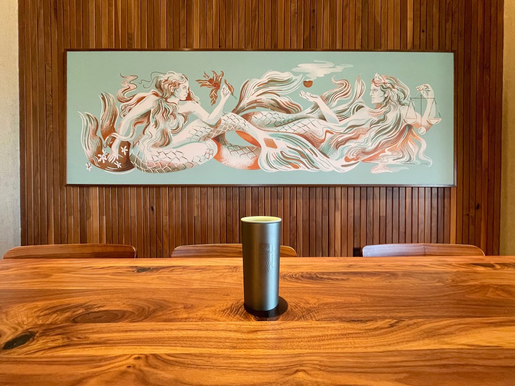 The next day, we really needed to make progress, so we tried. Crossing Oklahoma, we just drove in the morning. But not without a Starbucks appreciation for the day: this beautiful mermaid pair painting inside a branch in Elk City, Oklahoma. Now, we just drove and drove before our lunch place.