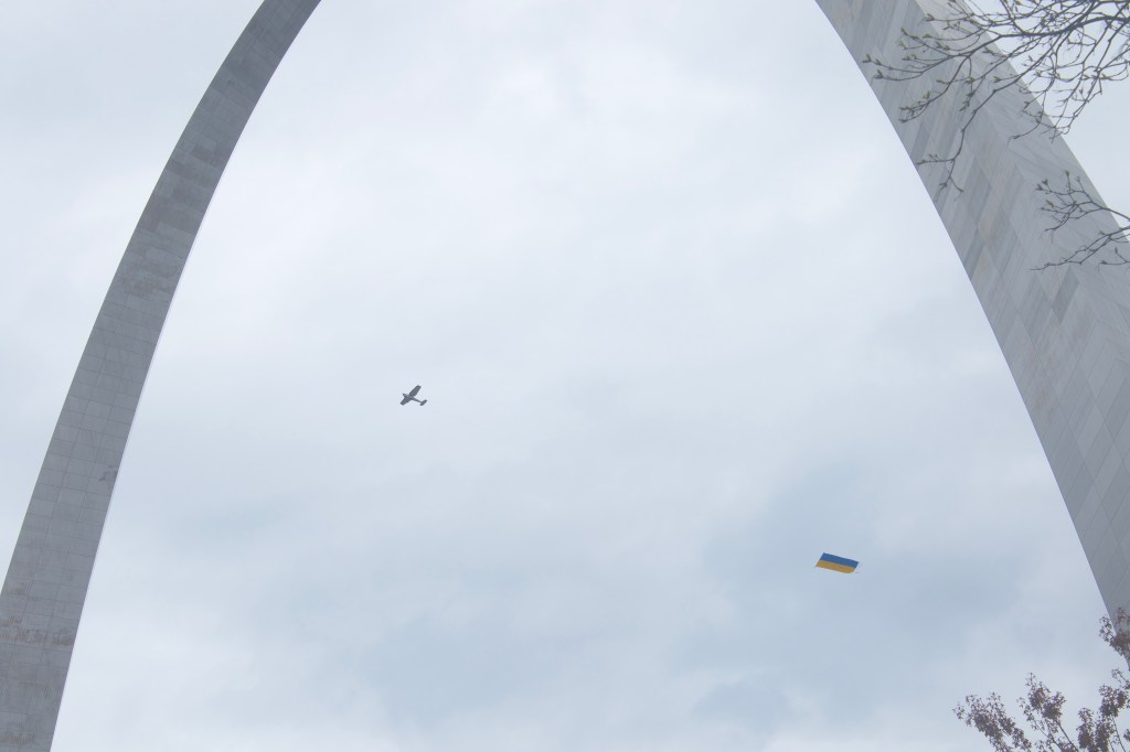 Wanting to avoid the crowd, we decided to just go to the Arch first, and maybe drive to a less busy place. While walking though, we spotted a restaurant that seemed to have more space inside and took note of it. Anyway, photo op first. One notable sight that we were lucky to catch then was a plane flying above the city in circles, dragging a flag of Ukraine. It makes for a good picture every time the plane passes through the giant arch.