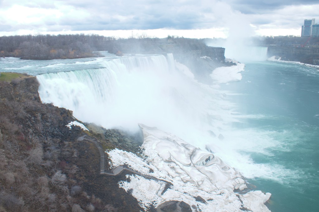 Okay, time to check out the majestic Niagara Falls. It’s noticeable how few the visitors still were – good! Another good thing about this timing: going to the observation tower was free. At least we could see the falls at a slightly different angle. There were also many parts of the park under renovation.